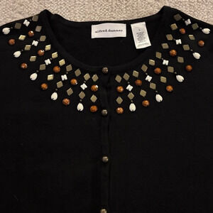 Alfred Dunner Black Cardigan with Gold Accents