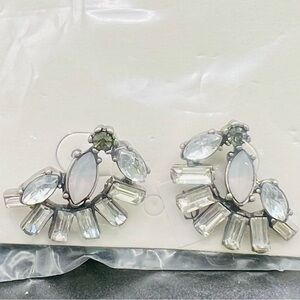 NWT Banana Republic Opal Fan Silver Art Deco Crystal Baguette Earrings