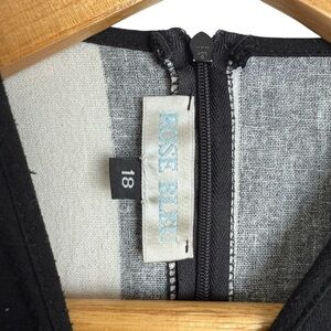 Rose Bleu Girls Black 3/4 Sleeve Dress Size 18 Blue White Stripe Detail