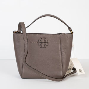 NWT Tory Burch Women's McGraw Small Bucket Bag Silver Maple Taupe Crossbody $348