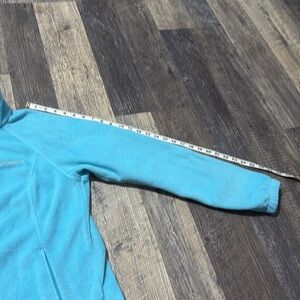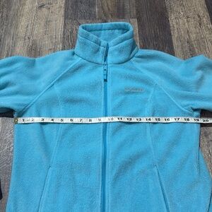 Columbia Jacket Women’s Size Medium Blue Fleece Pockets Mock Neck Zipper. Gently used with no stains or holes. Measurements in photos.