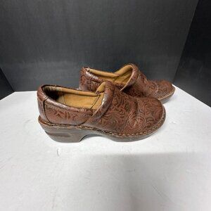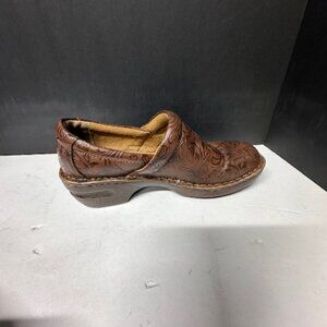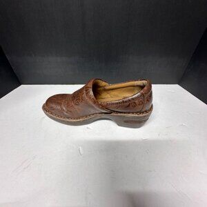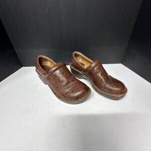 The BOC Born Concept Peggi clogs in woman's size 9 are casual, comfortable shoes made of leather with a brown color. These clogs feature a stylish design with a clog style, perfect for everyday wear. The Børn brand ensures high-quality craftsmanship and durability, making these shoes a great choice for women looking for both style and comfort in their footwear.