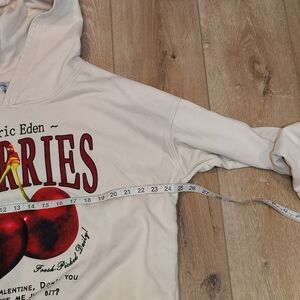 Aelfric Eden Cream Hoodie w/ Cherry Print Sz LG Gosh Valentine Don't You Like me just a "weenie" bit?