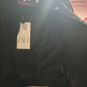 Zara Women's Chic Black Motto Collar Jacket