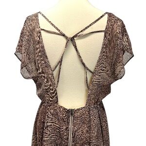 Alice + Olivia Kemper Silk Animal Print Open Strappy Back Mini Dress Women Large