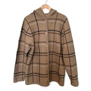 Top button is a bit loose and there is some pilling; otherwise excellent condition. This is oversized on a size medium, more fitted on a size large.