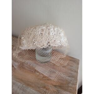 Vintage Cream Pillbox Hat with Netting