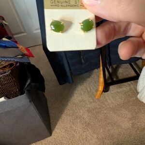 Elegant jewelry set featuring a stunning green stone. Perfect for adding a touch of sophistication to any outfit.