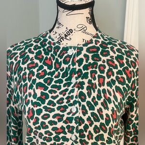NWT Brooks Brothers Green and Pink Leopard Print Cardigan | Size S