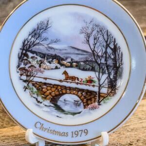 Vintage Hanging Ornament "Dashing Through The Snow" Mini Plate by Avon 1989, Comes with Small White Plastic Plate Stand Seen in Pictures, Front of Plate Reads "Christmas 1979", Country Christmas, Nostalgic Christmas, Holiday Decor, Christmas Tree Ornament, Tabletop Decor