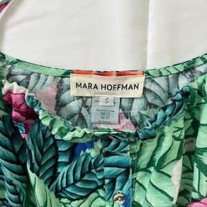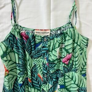 LIKE NEW- bought and washed but never worn. Mara Hoffman button-down spaghetti strap adjustable dress. Tropical leaf and flower pattern green pink, super cute!
