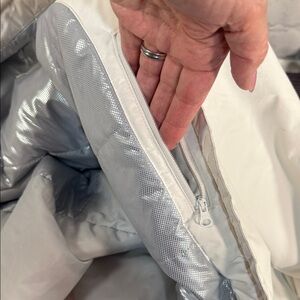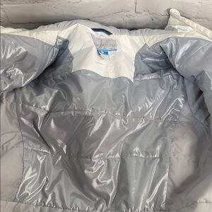 Women's Columbia Tipton Peak Hooded Insulated Jacket - White Gray - Size Womens XL. The jacket features Omni-TECH waterproof and breathable outer shell. Lined with Omni-HEAT thermal reflective interior.