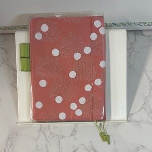 *Includes a clear plastic cover with a floral/white dot design to protect the solid colored cover