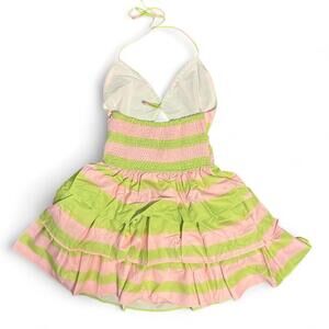 Tiered Halter Mini Dress Green Pink Striped Cutout Size M Main Strip Resort