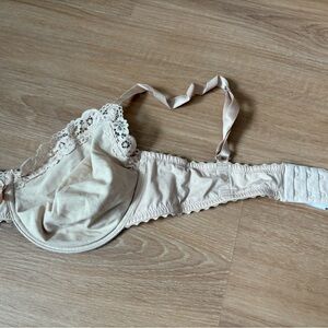 Soft tan bra with delicate lace trim. Offers comfort and elegance. Underwear
