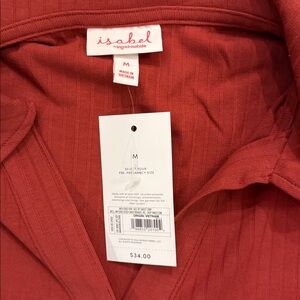 Isabel maternity two piece set that includes short sleeve top and skirt that covers belly. Barn red color. Brand new with tags! Size medium.