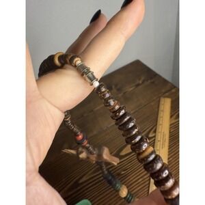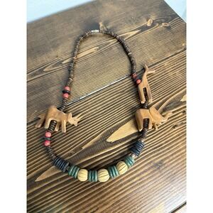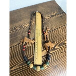 Vintage AFRICAN Carved Wooden ELEPHANT Animal Chunky Beaded Necklace