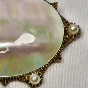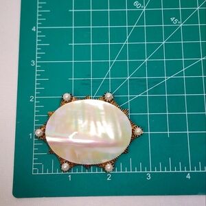Vintage Mother of Pearl Iridescent Oval Brooch with Pearl Accents