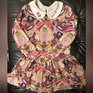 Cath Kids London Colorful Cat Print Dress with White Collar London Babydoll