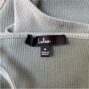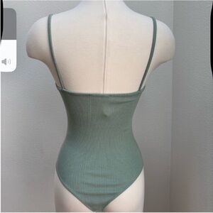Lulus Ribbed Bodysuit V Neck Spaghetti Strap Tank Bodycon Sage Green Size Medium