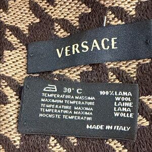 Versace Dark Brown and Tan Houndstooth Wool Scarf