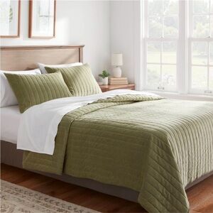 Full/Queen Channel Stitch Velvet Quilt Green - Threshold