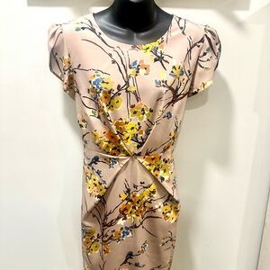 Chic mini dress with vibrant floral design. Features short sleeves and a stylish fit. I only wore it once so it’s in excellent pre-owned condition. No damage or flaws. Both the shell and liner are 100% polyester.