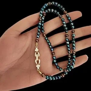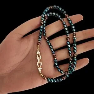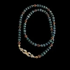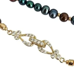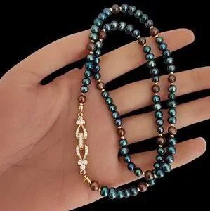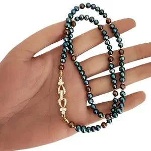 Vintage pearl necklace gold filigree clasp blue brown baby pearls A0215 -Q5 -Q2