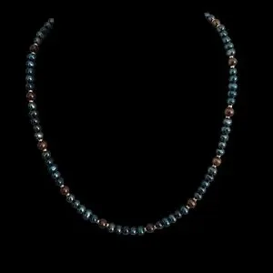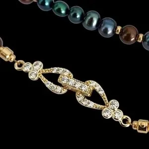 Vintage pearl necklace with gold filigree clasp blue-green brown baby pearls. Necklace is 19 inches in length. Pearls are 5mm in size. High luster pearls in blue-green and tawny brown.
