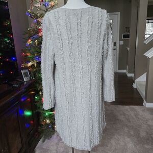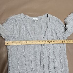 Neiman Marcus Women Cashmere L Cardigan Sweater Gray Fringe Luxury Cozy Office