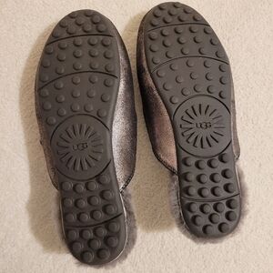 Upgrade your lounge game with these stunning UGG Ansley Metallic slippers. Combining the comfort of a slipper with the durability of a driving loafer, these are perfect for both indoor lounging and quick errands.