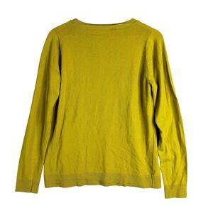 Lafayette 148 New York crew neck sweater in a vibrant chartreuse hue. This long sleeve knit top offers a classic silhouette with a comfortable fit. Its versatile style makes it perfect for layering or wearing on its own for casual outings or smart-casual office wear.
