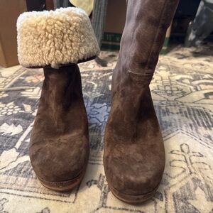 UGG Lynnea Brown Nubuck leather Clog Boots with Shearling