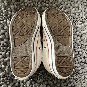 Stylish Converse sneakers for kids. White color with classic design. Comfortable and durable for daily adventures. LOTS of wear left. Photos show wear. *size options only let you choose boy it girl, these are for whichever child wants them, not just boys *