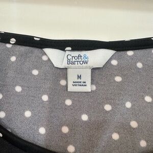 Croft & Barrow Polka Dot Black & White Women's Blouse Side Pockets Top Size M