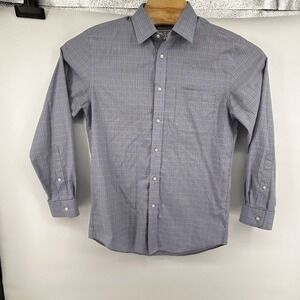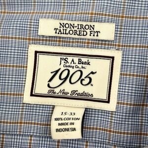 Jos A Banks Tailored Fit Blue Plaid Mens (15) Small Long Sleeve Button Up Shirt