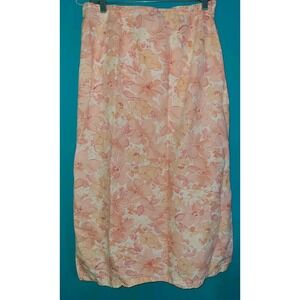 90s Liz Claiborne Linen Skirt SIZE 14? (Read Plz Orange Pink Floral Wrap Vintage