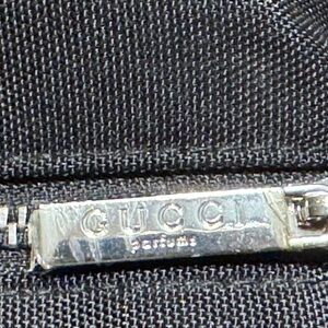 Elegant Gucci toiletry bag in black. Features a sleek design with a durable zipper. Ideal for travel and daily use.