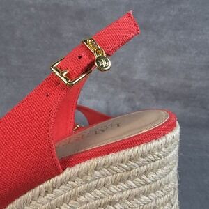 Lauren Ralph Lauren Womens Red Espadrille Wedge Heel Sz 7.5 Coquette Sexy Office