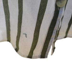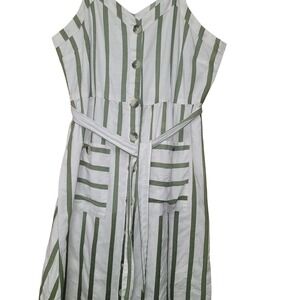 Color White and Tan, Vertical Striped Pattern, Button front closure, 2 Front pockets with button accents, Tie belt