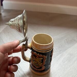 Vintage West Germany Ceramic 3 Cities Stein Heidelberg Frankfurt Mug Lid