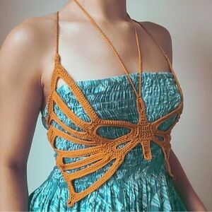 Unique orange crochet butterfly top. Perfect for layering over dresses or tops. Made by me