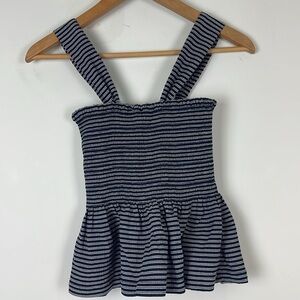 Madewell Texture & Thread Smocked Peplum Tank Top in Stripe Size Extra Small