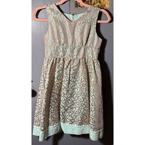 Pippa & Julie Girls Metallic Jacquard Fit & Flare Dress Size 10 Mint Gold
