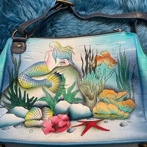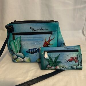 Anuschka Mermaid Design Blue Adjustable Crossbody Purse and Wallet Set