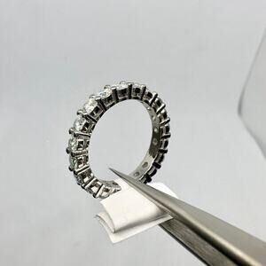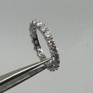 Moissanite Eternity Ring. Brilliant & Sparkly Moissanite Band w/ Genuine Moissanites around. Great size to pair w/ a wedding ring or alone. Tested with a Gemoro Testerossa Professional Diamond Tester. It test positive & is authentic moissanite.
