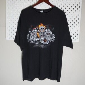 Keywords: Las Vegas Motor Speedway, Racing T-Shirt, Graphic Tee, Motorsport Apparel, Nascar, Checkered Flag, Flame Design, Black T-Shirt, Adult 2XL, Speedway Shirt, Vintage Racing, Casual Wear, Men's Fashion