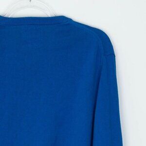 Vintage Express Mens V Neck Cotton Sweater Size L Blue Logo Preppy Academia Y2K