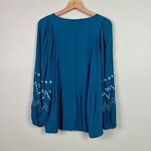 Lane Bryant Classic Split-Neck Embroidered Peasant Top in Ink Blue Size 20