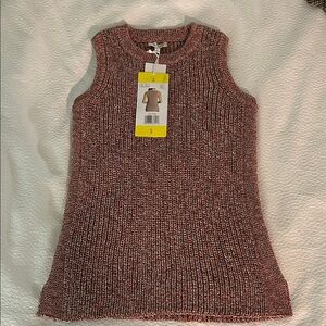 Stylish rust jumpsuit with halter neckline. Features adjustable tie front and cut out in front